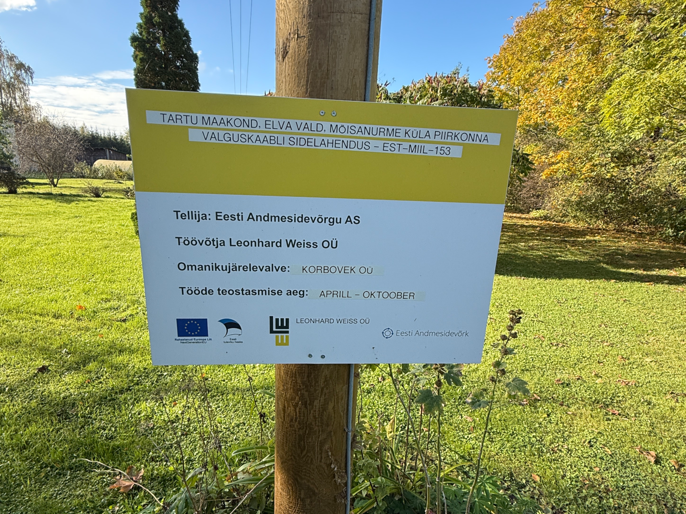 Projekti Internet Koju liitujatele valguskaabliühenduste ehitamine Kastre vallas Kurepalu külas. Eesti Andmesidevõrgu ehituse teostaja Leonhard Weiss.